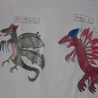 어제도 아이가 오랫동안 공을 들여 그림을 그렸다고 한다. 12시가 넘어 집에 들어가니 아내가 그림을 보라고 꺼내준다. 술에 취해 사진을 찍었더니 상태가 별로 좋지 않다. 아이는 이 그림들을 유치원에 가져가서 선생님과 친구들에게 보여주겠다고 했단다. 역시 괴수 시리즈이다.